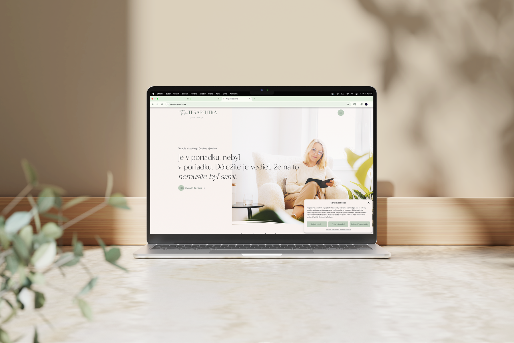 Zvolili sme názov Tvoja Terapeutka – blízky, silný pre SEO a s dostupnou doménou. Vizuálna identita čerpá z prírody, tepla a jemnosti.